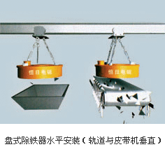輸料大皮帶除了上下山段之外,多為水平運行,在大皮帶任意水平段上方均可按水平式吊裝除鐵器